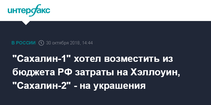 "Сахалин-1" хотел возместить из бюджета РФ затраты на Хэллоуин, "Сахалин-2" - на украшения