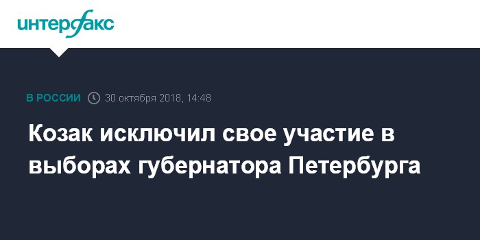Москва. 30 октября. INTERFAX.RU - Вице-премьер Дмитрий Козак заявил, что не будет участвовать в выборах губернатора Санкт-Петербурга.