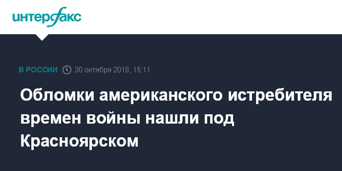 Москва. 30 октября. INTERFAX.RU - Поисковики Военно-инженерного института Сибирского федерального университета совместно с представителями Русского географического общества (РГО) обнаружили в окрестностях Красноярска обломки американского истребителя времен Великой отечественной войны. Об этом сообщил пресс-секретарь красноярского отделения РГО Владислав Власов на своей странице в соцсетях.