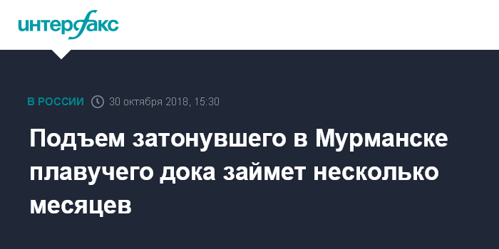 Подъем затонувшего в Мурманске плавучего дока займет несколько месяцев