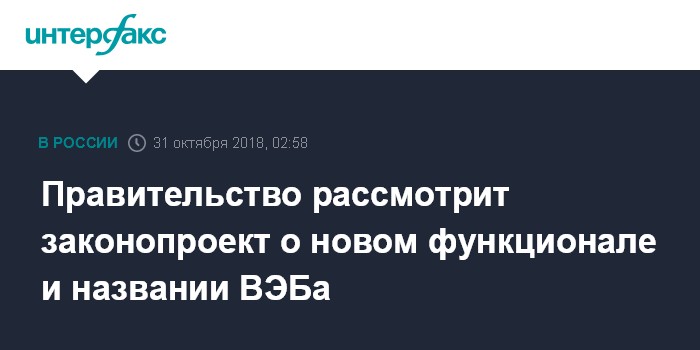 Правительство рассмотрит законопроект о новом функционале и названии ВЭБа