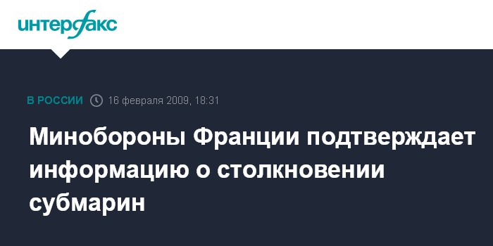Париж. 16 февраля. INTERFAX.RU - Министерство обороны Франции подтвердило в понедельник информацию о столкновении в Атлантическом океане французской и британской атомных подводных лодок.