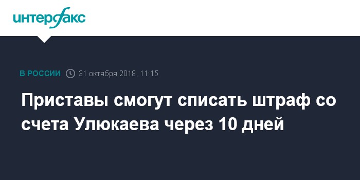 Москва. 31 октября. INTERFAX.RU - Судебные приставы смогут списать оставшуюся часть штрафа, назначенную по приговору за получение взятки бывшему министру экономического развития Алексею Улюкаеву, только после вступления в силу решения об отмене ареста его счета, сообщил "Интерфаксу" прокурор Павел Филипчук.