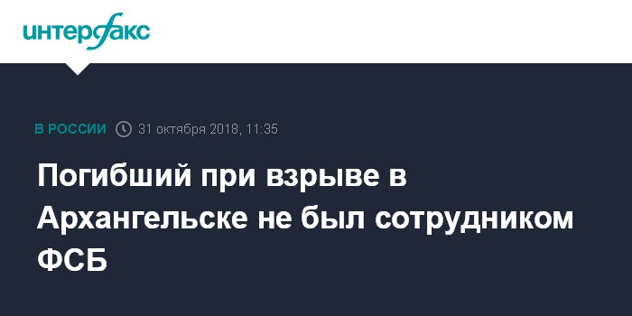 Погибший при взрыве в Архангельске не был сотрудником ФСБ