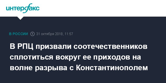 В РПЦ призвали соотечественников сплотиться вокруг ее приходов на волне разрыва с Константинополем