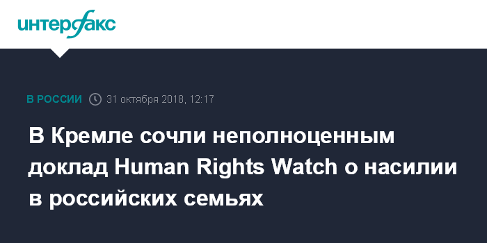 В Кремле сочли неполноценным доклад Human Rights Watch о насилии в российских семьях