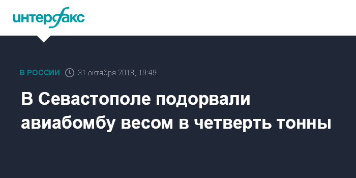 Москва. 31 октября. INTERFAX.RU - Пиротехники в Севастополе провели в среду операцию по обезвреживанию немецкой авиабомбы весом 250 килограммов времен Великой Отечественной войны, сообщила пресс-служба севастопольского управления МЧС РФ.