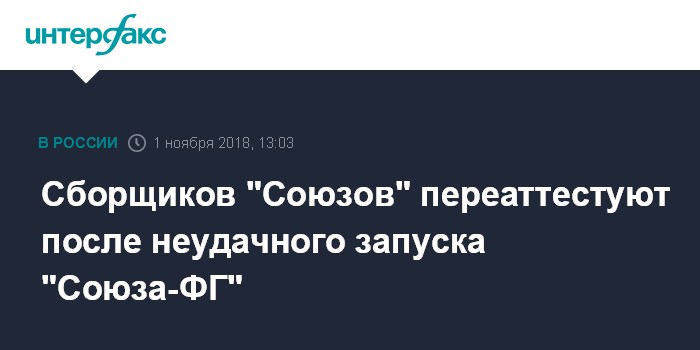 Москва. 1 ноября. INTERFAX.RU - Сборщики ракет-носителей "Союз" пройдут дополнительную переаттестацию после аварийного запуска, сообщил гендиректор самарского Ракетно-космического центра (РКЦ) "Прогресс" Дмитрий Баранов.
