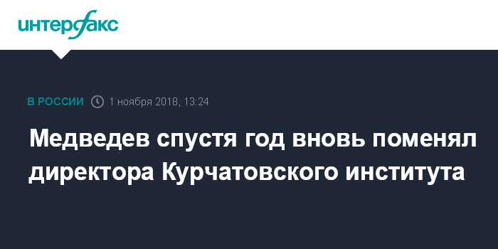 Москва. 1 ноября. INTERFAX.RU - Премьер-министр Дмитрий Медведев назначил временно исполняющим обязанности директора ФГБУ "Национальный исследовательский центр "Курчатовский институт" первого заместителя главы института Александра Благова.