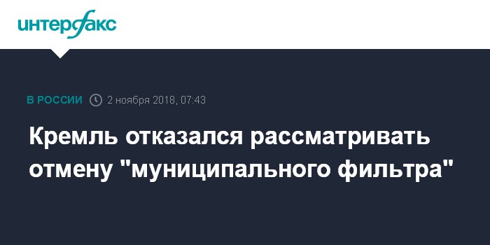 "Вопрос о кардинальных изменениях избирательного законодательства в повестке дня администрации президента не стоит. Там не видят необходимости в отмене или модернизации "муниципального фильтра", а также возвращении в избирательные бюллетени графы "против всех", - сказал собеседник агентства.