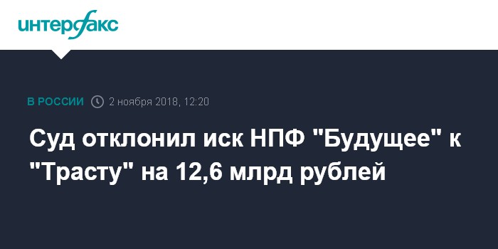 Суд отклонил иск НПФ "Будущее" к "Трасту" на 12,6 млрд рублей