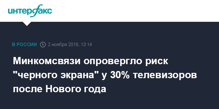 Минкомсвязи опровергло риск "черного экрана" у 30% телевизоров после Нового года