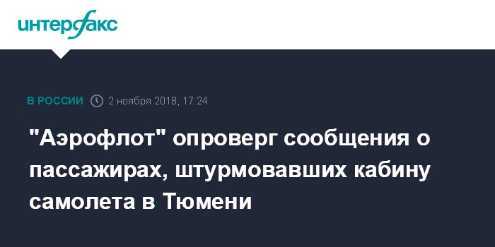 "Аэрофлот" опроверг сообщения о пассажирах, штурмовавших кабину самолета в Тюмени