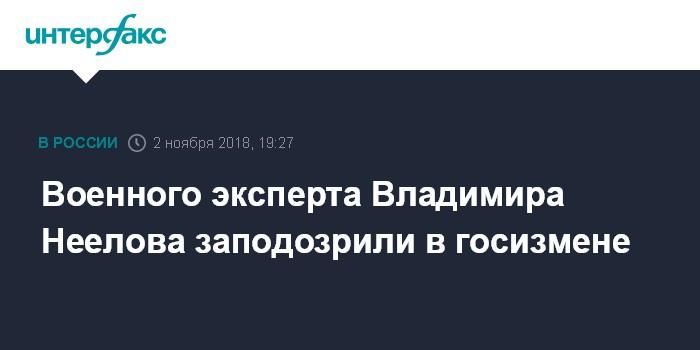 Москва. 2 ноября. INTERFAX.RU - Военный эксперт, автор книг по армейской тематике Владимир Неелов подозревается в государственной измене.