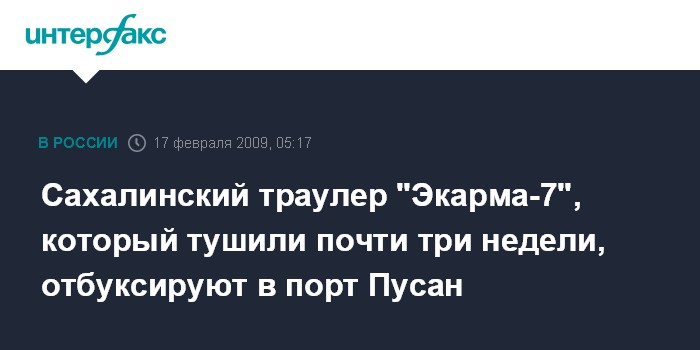 Сахалинский траулер "Экарма-7", который тушили почти три недели, отбуксируют в порт Пусан
