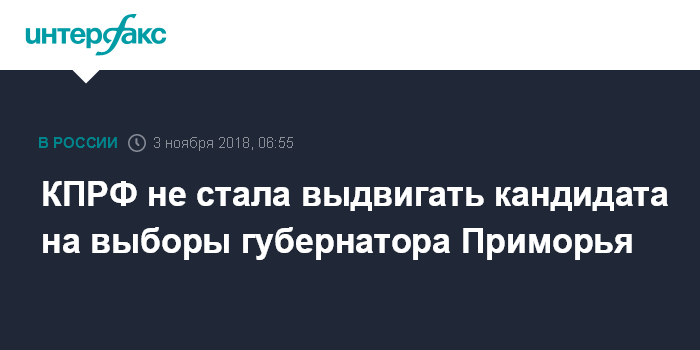 Москва. 3 ноября. INTERFAX.RU - Приморское отделение КПРФ не стало выдвигать кандидата на выборы губернатора Приморья.