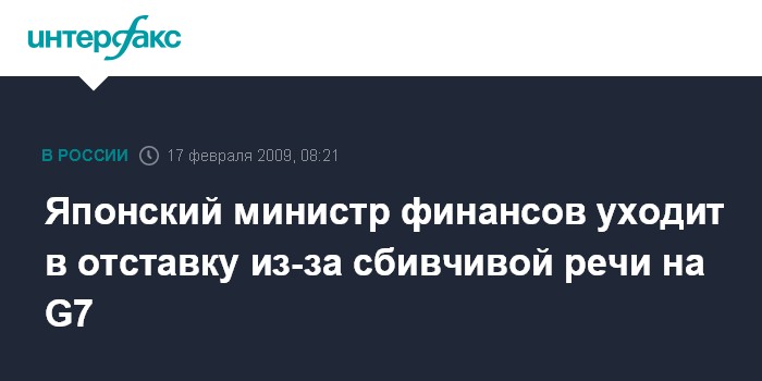 Москва. 17 февраля. INTERFAX.RU - Министр финансов страны Соити Накагава заявил во вторник, что намерен уйти в отставку из-за обвинений со стороны оппозиции, что он был нетрезв на пресс-конференции G7 14 февраля в Риме, сообщило агентство Bloomberg.