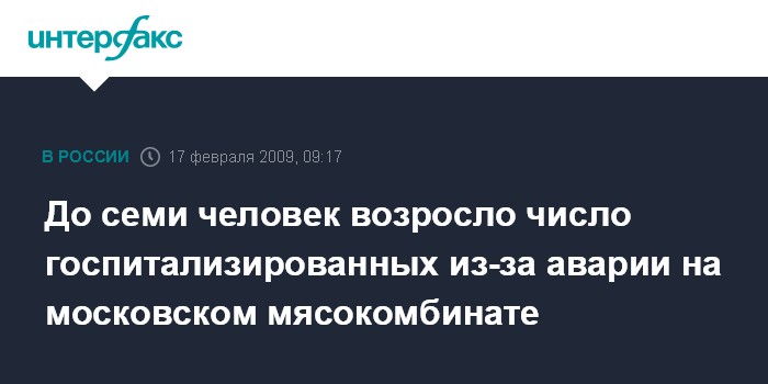 До семи человек возросло число госпитализированных из-за аварии на московском мясокомбинате