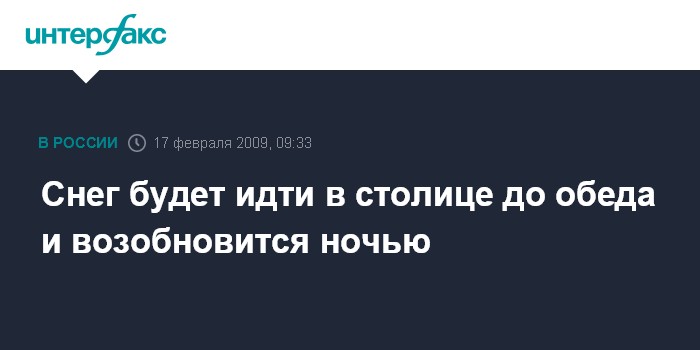 Москва. 17 февраля. INTERFAX.RU - По прогнозам Гидрометеобюро Москвы и Московской области, снег будет идти в столичном регионе до 14:00.