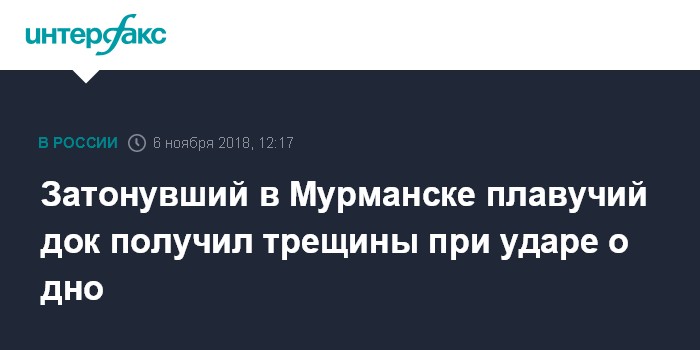 Затонувший в Мурманске плавучий док получил трещины при ударе о дно