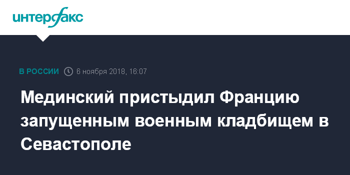 Мединский пристыдил Францию запущенным военным кладбищем в Севастополе