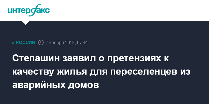 "Я просил бы обратить внимание на качество вновь вводимого жилья, потому что серьезные нарекания у нас были практически во всех субъектах РФ. Проверка, которую проводил фонд, выявила замечания по ряду регионов края, в части качества жилья", - сообщил Степашин на совещании в Приморье.