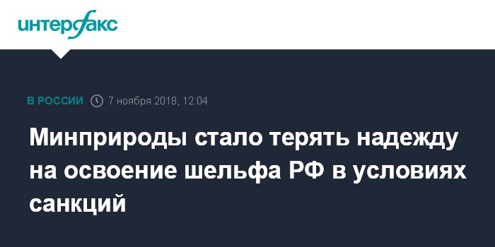 Москва. 7 ноября. INTERFAX.RU - Минприроды теряет надежду на скорое освоение российского шельфа в условиях санкций. Об этом сообщил глава ведомства Дмитрий Кобылкин на "правительственном часе" в Совете Федерации.