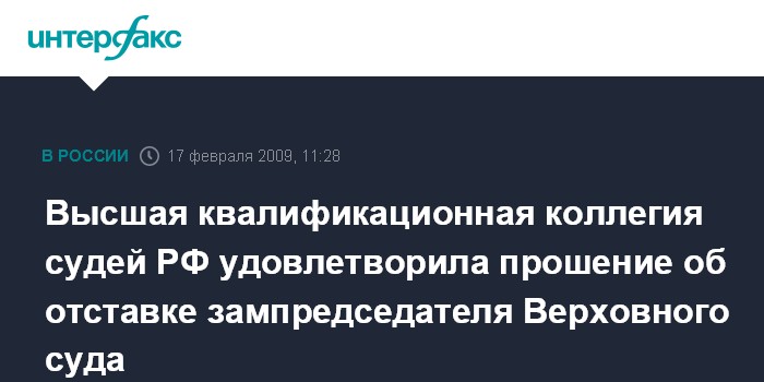 Высшая квалификационная коллегия судей РФ удовлетворила прошение об отставке зампредседателя Верховного суда