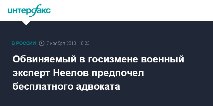 Неелову инкриминируется преступление, предусмотренное статьей 275 УК РФ (госизмена). Ему грозит лишение свободы на срок от 12 до 20 лет. По данным источника "Интерфакса", эксперт свою вину не признает.