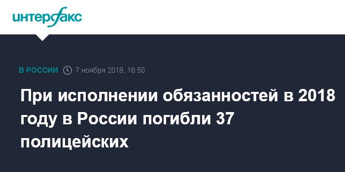 При исполнении обязанностей в 2018 году в России погибли 37 полицейских