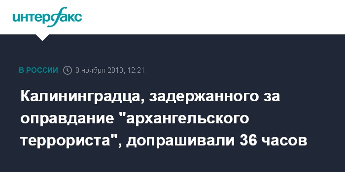 Калининградца, задержанного за оправдание "архангельского террориста", допрашивали 36 часов