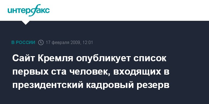 Сайт Кремля опубликует список первых ста человек, входящих в президентский кадровый резерв