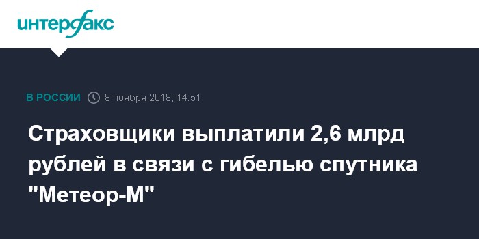 Страховщики выплатили 2,6 млрд рублей в связи с гибелью спутника "Метеор-М"