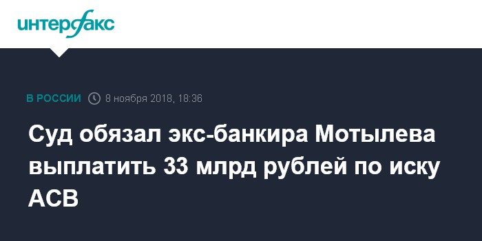 Суд обязал экс-банкира Мотылева выплатить 33 млрд рублей по иску АСВ