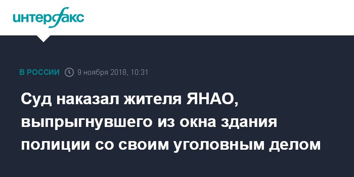Суд наказал жителя ЯНАО, выпрыгнувшего из окна здания полиции со своим уголовным делом