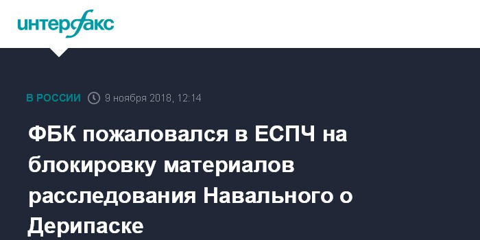 ФБК пожаловался в ЕСПЧ на блокировку материалов расследования Навального о Дерипаске