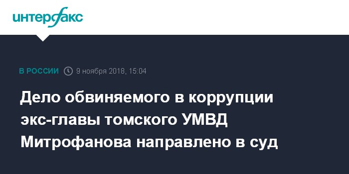 Дело обвиняемого в коррупции экс-главы томского УМВД Митрофанова направлено в суд