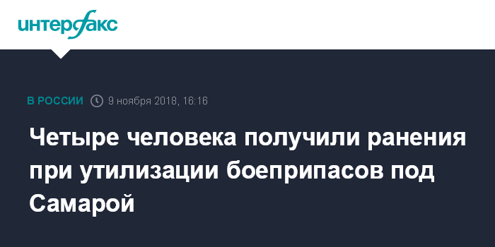 Москва. 9 ноября. INTERFAX.RU - Снаряд сдетонировал на полигоне боеприпасов в Чапаевске (Самарская область), четыре человека получили осколочные ранения, сообщил агентству "Интерфакс" источник в правоохранительных органах.