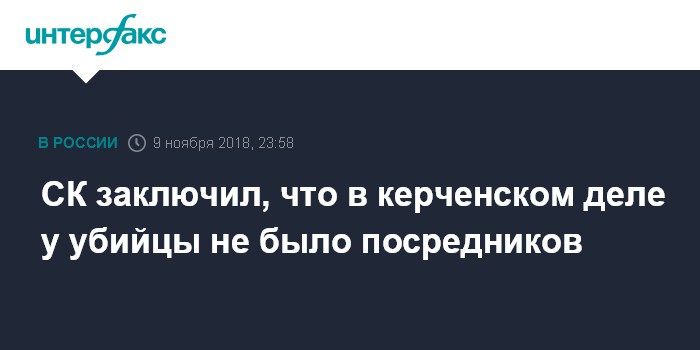Москва. 9 ноября. INTERFAX.RU - Следствие по делу о массовом убийстве в керченском колледже пришло к окончательному выводу, что у убийцы не было посредников, сообщает в пятницу Следственный комитет Российской Федерации.