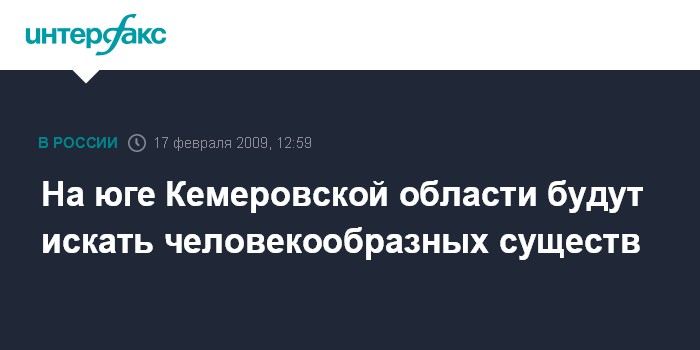 Москва. 17 февраля. INTERFAX.RU - В Таштагольском районе Кемеровской области планируется снарядить экспедицию на поиски человекообразных существ, с которыми периодически сталкиваются местные охотники.
