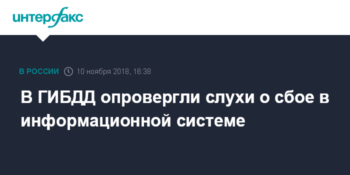Москва. 10 ноября. INTERFAX.RU - Госавтоинспекция России опровергла информацию СМИ о сбоях в работе Федеральной информационной системы (ФИС) ведомства.