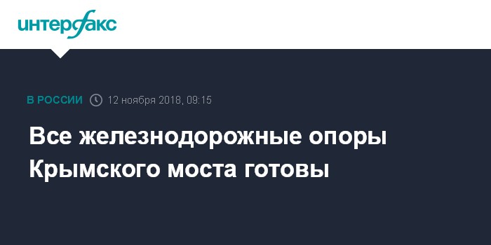 Москва. 12 ноября. INTERFAX.RU - Строители завершили работы по сооружению опор железнодорожной части моста через Керченский пролив, готовы все 307 конструкций, сообщил информационный центр проекта в понедельник.