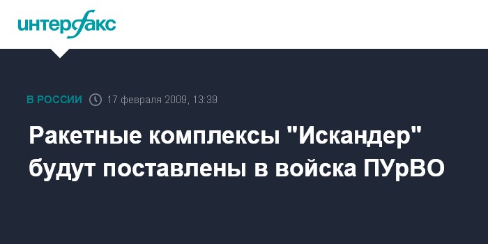 Ракетные комплексы "Искандер" будут поставлены в войска ПУрВО