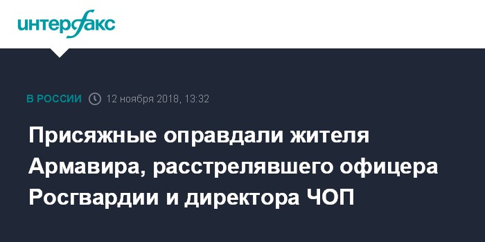 Присяжные оправдали жителя Армавира, расстрелявшего офицера Росгвардии и директора ЧОП
