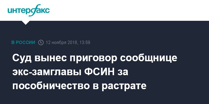 Суд вынес приговор сообщнице экс-замглавы ФСИН за пособничество в растрате