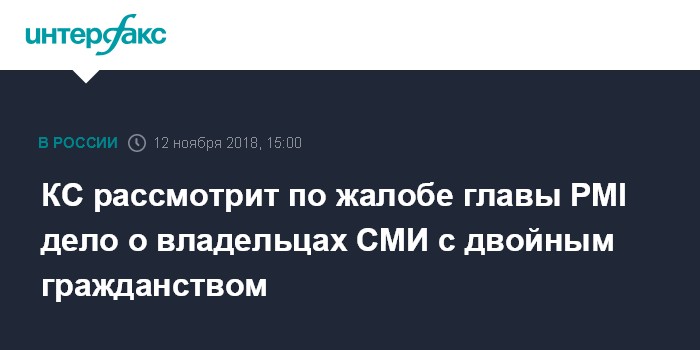 КС рассмотрит по жалобе главы PMI дело о владельцах СМИ с двойным гражданством