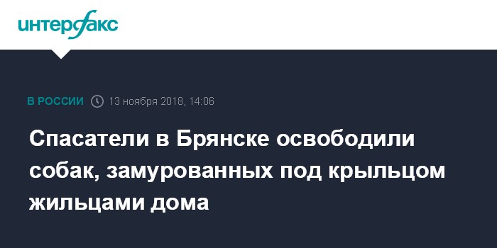Москва. 13 ноября. INTERFAX.RU - Сотрудники поисково-спасательной службы достали из-под крыльца одного из домов в десятом микрорайоне Брянска замурованных собаку со щенками, сообщает во вторник пресс-служба ГУ МЧС России по Брянской области.