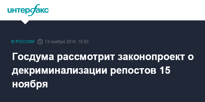 Госдума рассмотрит законопроект о декриминализации репостов 15 ноября