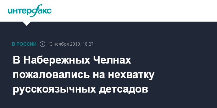 Москва. 13 ноября. INTERFAX.RU - Прокуратура Татарстана проверит заявление общественников, пожаловавшихся на нарушение прав детей из-за малого количества русскоязычных детских садов в Набережных Челнах, сообщает ведомство во вторник в своем твиттере.