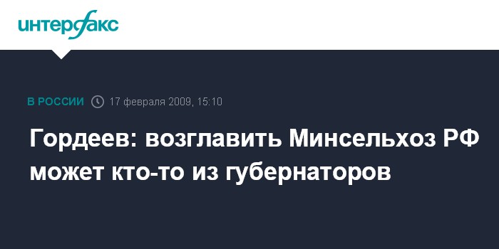 Гордеев: возглавить Минсельхоз РФ может кто-то из губернаторов